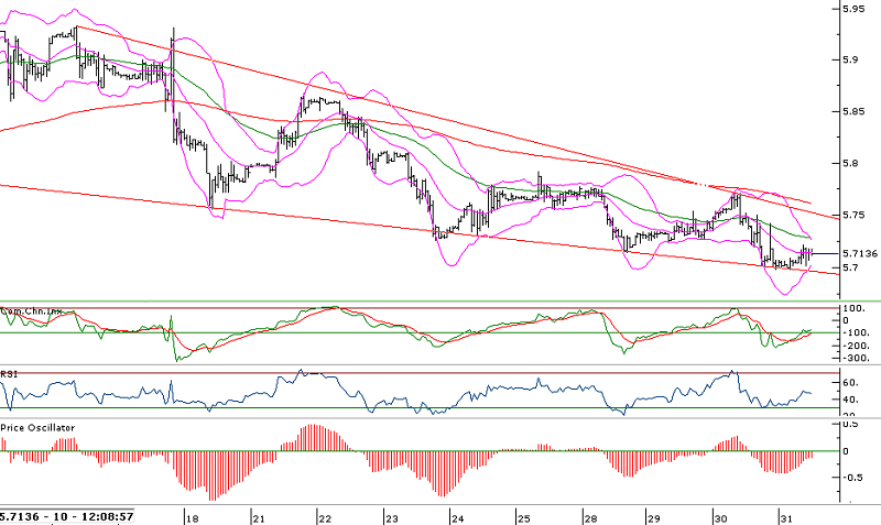 - Dolar/TL’de oluşan alçalan üçgenin 5,69 seviyesinden geçen alt bandı 4 defadır test ediliyor, bu seviyenin kırılması 5,65’in test edilmesini sağlayabilir.