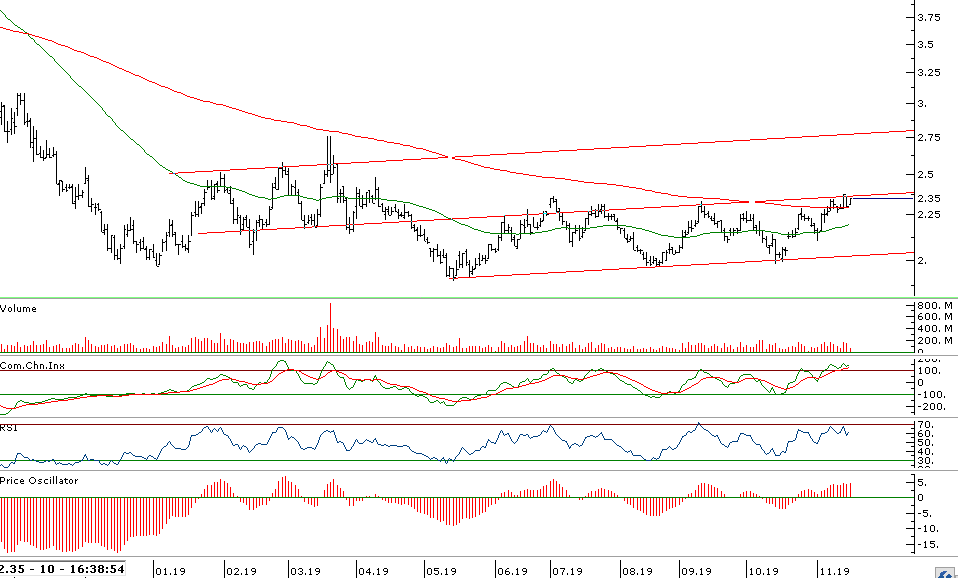 - Hissede paralel kanalın orta bandının geçtiği 2,36 seviyesi kırılması durumunda üst bandına doğru yükseliş trendinin devam etmesini bekliyoruz.