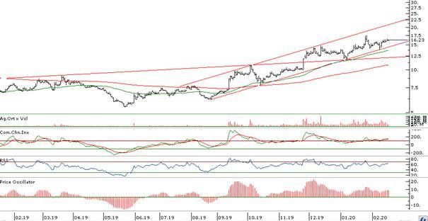- Beklentimiz, 16,50’in kırılmasıyla 17,50 fiyat seviyesinin görülmesi yönünde.