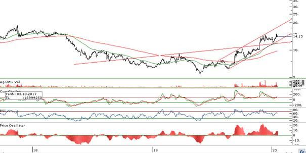 - Beklentimiz, 14,18’in kırılmasıyla 16,00 fiyat seviyesinin görülmesi yönünde.