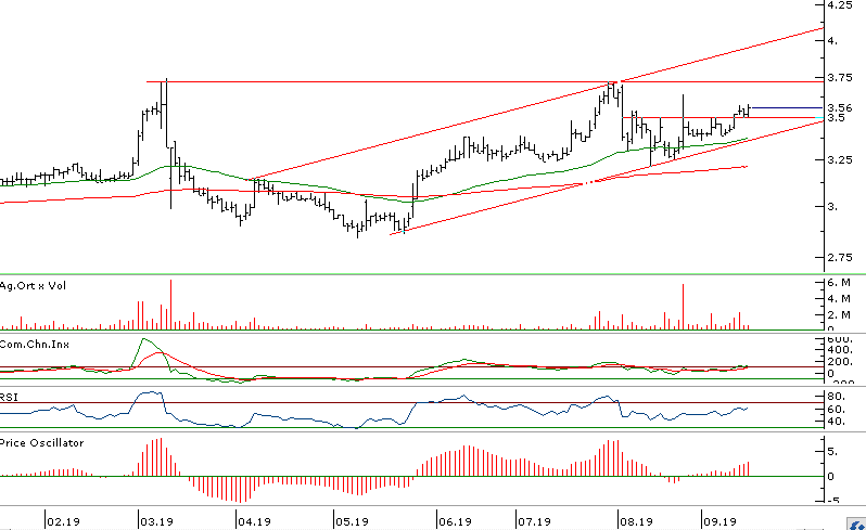 - Hissede son bir haftalık işlem hacmindeki artış 3,50 direnç seviyesinin kırılmasıyla 3,71 seviyesine doğru yükselişi başlatmış görünüyor