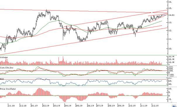 - Beklentimiz, 14,10 seviyesinin kırılmasıyla yükselişin devamını bekliyoruz.