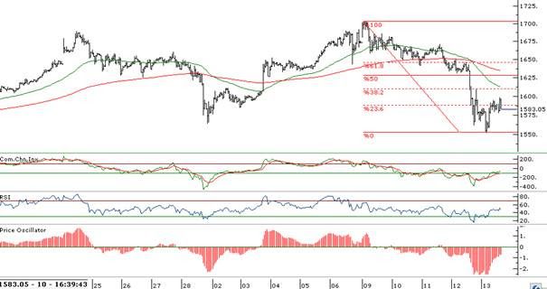 - Ons altında 1633$ seviyesinden başlayan sert satışlar 1551$ seviyesinden dönerek #,6 dan geçen 1586$ fiboncacci seviyesinde direnç ile karşılaşmıştır, bu seviyenin üzerine çıkılabilirse 1610$ kısa vadede yeni direnç seviyesi olacaktır.
