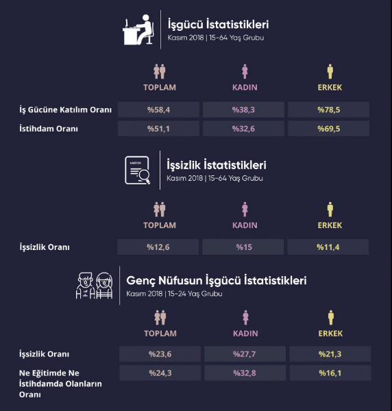 -> Gelelim Türkiye'deki kadın işgücü hakkındaki bazı verilere ve gerçeklere:
