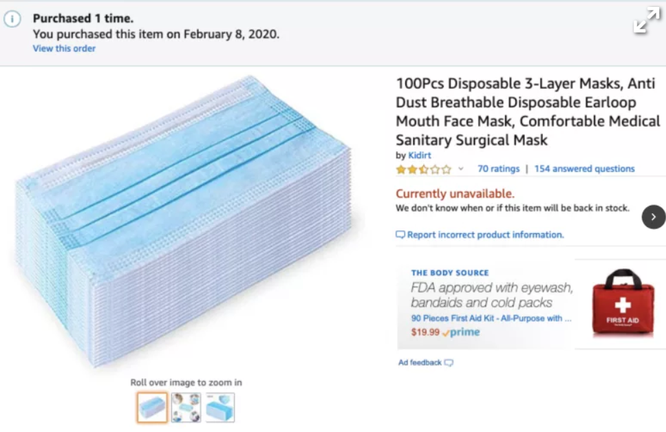 AnChain.AI, koronavirüs tıbbi tedarik dolandırıcılıklarını araştırmak için farklı bir yaklaşım benimsedi. AnChain CEO'su Victor Fang, Amazon'un aşağıda görülen maskelerini geçen ayın başında sipariş etti, ancak satıcı teslim etmedi.
