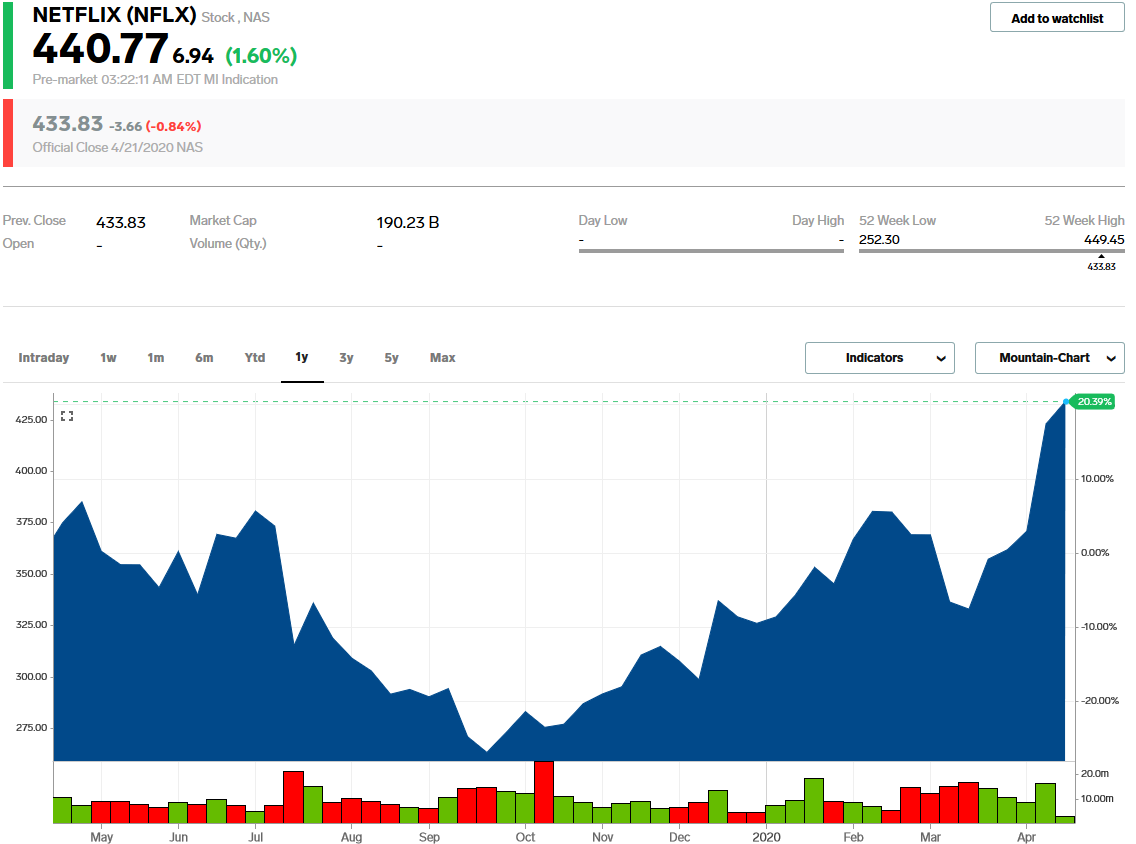 Piyasa kapanışının ardından şirketin hisseleri %4'ten fazla yükseldi. Peki Netflix'in ilk -çeyrekte gösterdiği performans ve karantina dönemleri arasındaki ilişki nasıl? İnceleyelim: