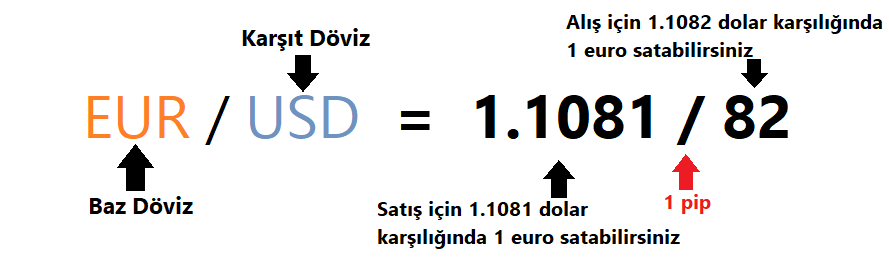 Bu örnekler üzerinden açıklamak gerekirse baz para birimi sol taraftaki baz dövizdir (EUR,GBP,USD) ve sağdaki karşı dövizler (USD, TRY, JPY) quote para birimidir. Pariteler ayrıca şu şekilde okunur: