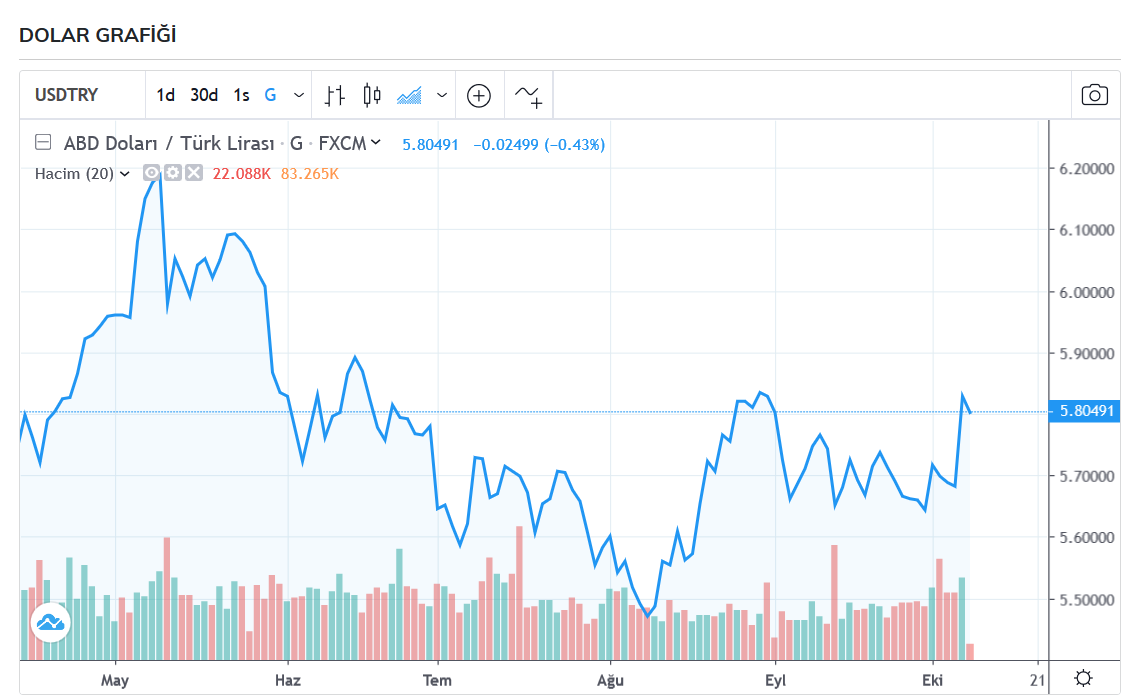 Şu anda USD 5,8 TL ile işlem görüyor.