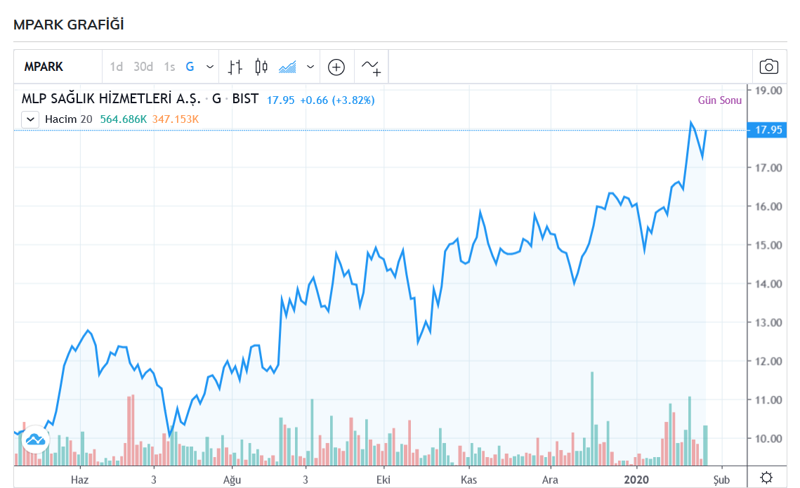 Borsa İstanbul'a (BIST100) bağlı olan 2 şirket bulunuyor: Lokman Hekim Engürüsağ Sağlık, Turizm, Eğitim Hizmetleri ve İnşaat Taahhüt A.Ş. (BIST100: LKMNH) ve MLP Sağlık Hizmetleri A.Ş. (BIST100: MPARK).