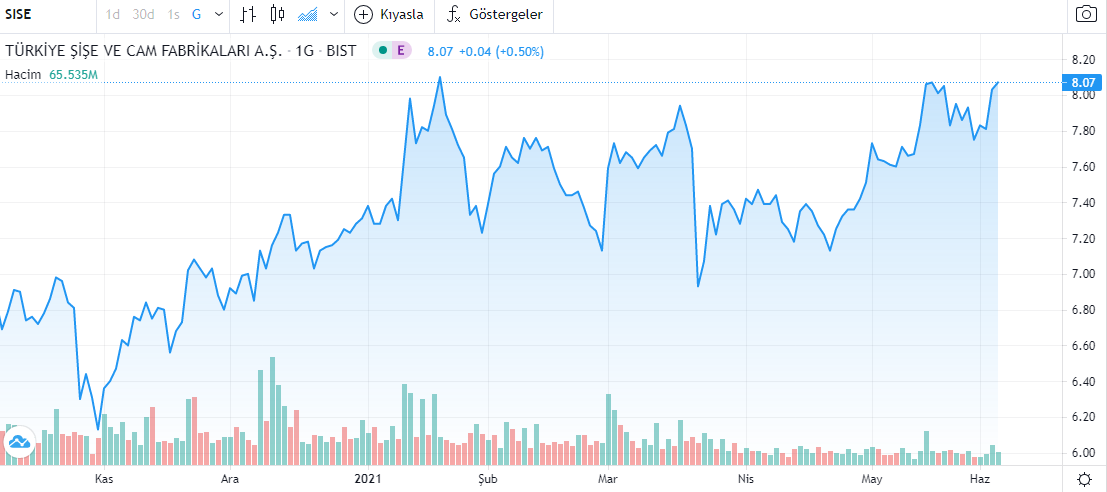 SISE hisse senedi fiyatı haziran ayı başından beri yükseliş görüyor. SISE yorum ve fiyat bilgisi için buraya tıklayabilirsiniz.