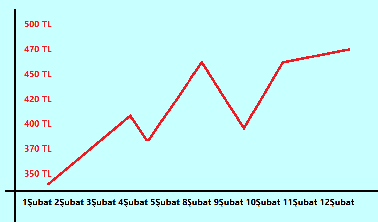 Her veri noktası, zaman içinde değerlerde meydana gelen değişiklikleri görsel olarak gösteren bir çizgi ile çizilir ve bağlanır. Hissenin değeri günlük olarak artarsa, çizgi yukarı ve sağa doğru eğim yapar. Tersi durum olsaydı, yani hisse senedinin fiyatı istikrarlı bir şekilde düşseydi, çizgi aşağı ve sağa doğru eğimli olurdu.