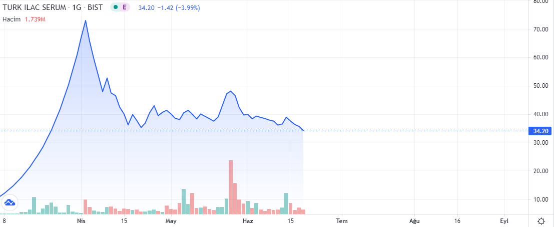 TRILC koduyla borsada listelenen şirket hisseleri, nisan ayı başında 73 TL'yi aşmıştı. Yükselişten sonra kademeli olarak düşen TRILC, 34 TL seviyesinde fiyatlanıyor.