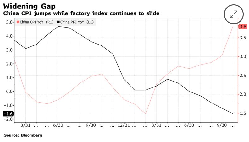 Çin'de üretilen domuz eti, domuzlarda görülen ateşli bir hastalık (ASF) sebebiyle ekim ayında fiyatları iki katına çıktı. Ardından tüketici enflasyonunu Ocak 2012'den bu yana en yüksek seviyesi olan %3,8'e çıktı. Ekonomistler, kademeli olarak azalmadan önce enflasyonun Ocak ayında % 5 veya % 6'da zirveye oynamasını bekliyorlar. Bu düzeyde görülen bir enflasyon, merkez bankasının para politikasını hafifletme, hala sonlanamamış olan ticaret savaşı ve zayıf iç talep arasındaki ekonomiyi dengeleme çabalarını engelleyebilir.