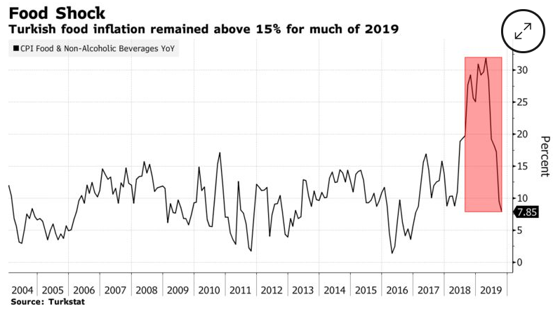 Gıda enflasyonu ilk çeyrekte %30 civarında seyretti ve 2018 Ağustos'undaki tedarik zinciri sorunları ve doğal sulamaya yoğun bir şekilde bağlı olmasından kaynaklanan döviz krizi nedeniyle yılın büyük bölümünde %15'in üzerinde kaldı. Hükümet, doğrudan çiftçilerden ürün almayı ve şehirlerde satmayı üstlendi. Hububat üreten illerde görülen son kuraklıklar, gelecek yıl olası arz kısıtlamaları konusunda endişelere yol açarken, merkez bankası gıda enflasyonunun 2020 sonuna kadar % 11 olmasını bekliyor.