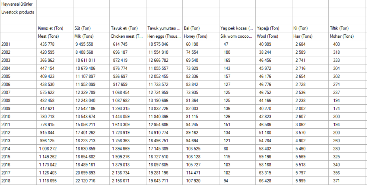 Tarımsal ve hayvansal üretime baktığımızda ise bazı düşüşler ve kısmi artışlar görüyoruz: