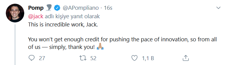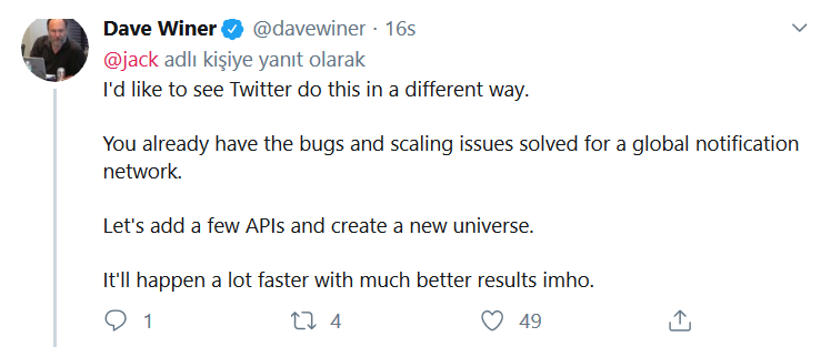 Jack Dorsey'in konuyla alakalı diğer yorumları: