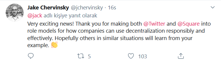 Bilindiği gibi Dorsey, kendi kurduğu ve yönettiği, ABD merkezli ana ödeme şirketi olan Square'in kripto para birimi odaklı bir bölümü olan Square Crypto'yu hayata geçirmişti. Bu bölüm, kullanıcıların Bitcoin (BTC) deneyimini geliştirmeyi amaçlıyor.