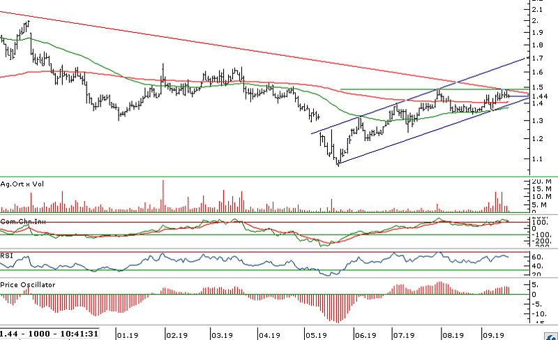 - Hissede aybaşından buyana işlem hacmindeki artış 1,48 direnç seviyesinin kırılmasıyla 1,55 seviyesine doğru yükselişi başlatabilir.