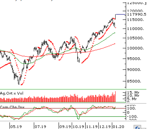 Pozitif havanın devam etmesi durumunda direnç seviyemiz 2019’un son günlerinde de beklediğimiz gibi 120.000 olarak ön plana çıkıyor.