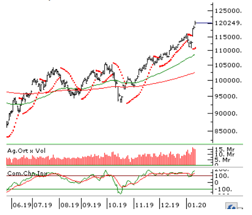 Piyasaların ABD-Çin anlaşması ve TCMB’den gelecek faiz kararının beklentileriyle başladığı haftada BİST100 endeksi haftanın ilk işlem gününe %0,79 oranında yükselişle 119.595 seviyesinden başladı. Endeks, küresel piyasalardaki korkuların arınması ile birlikte günü %1,56 artışla 120.511 seviyesinden kapattı.