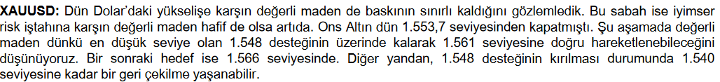 ZİRAAT YATIRIM - XAUUSD TEKNİK ANALİZİ - 17.01.2020